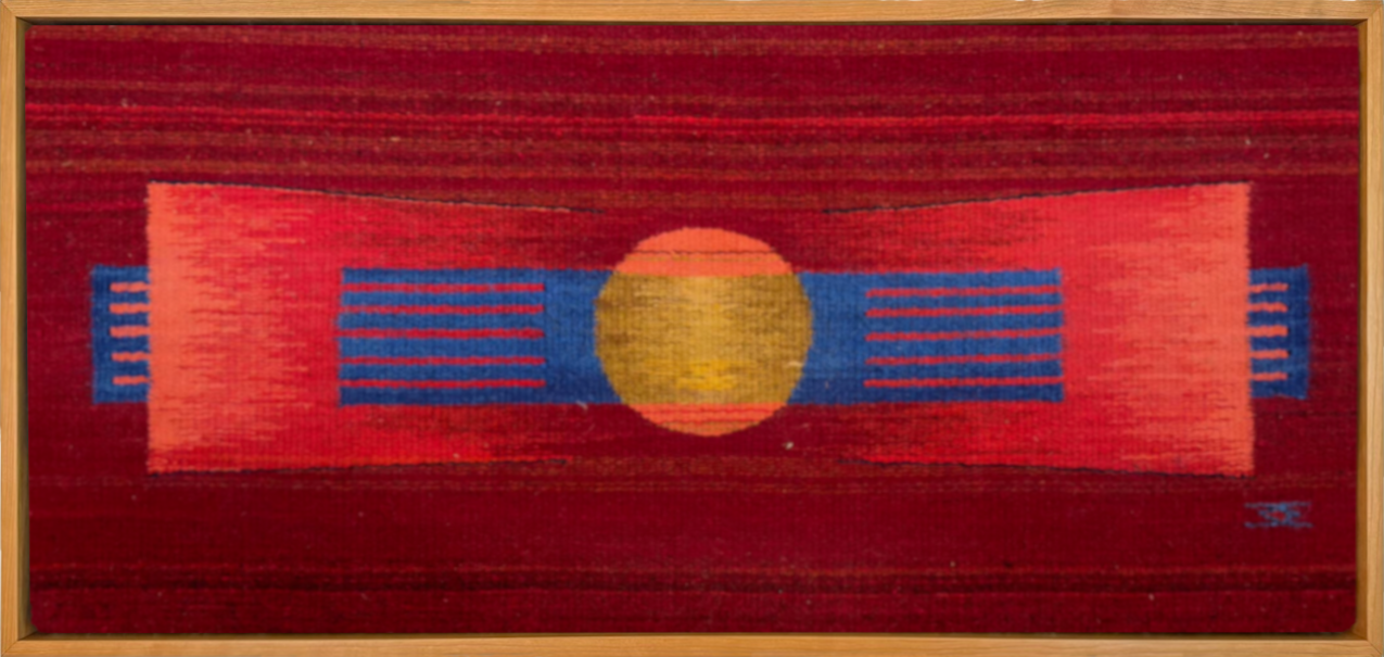 Hand-spun Oaxacan and mill-spun New Mexico Churro wool dyed with aniline and pomegranate skin for the gold color.